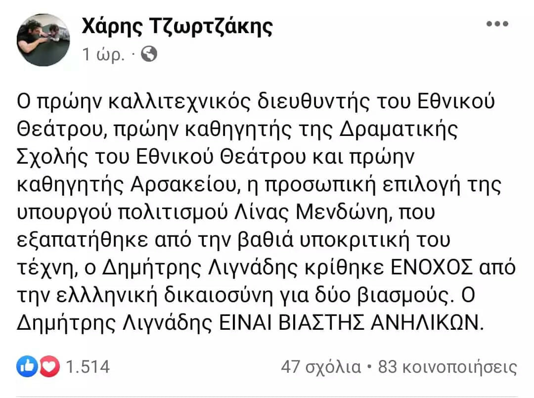 Υπόθεση Λιγνάδη: βούλιαξε από την #ντροπή το διαδίκτυο για την απελευθέρωσή του