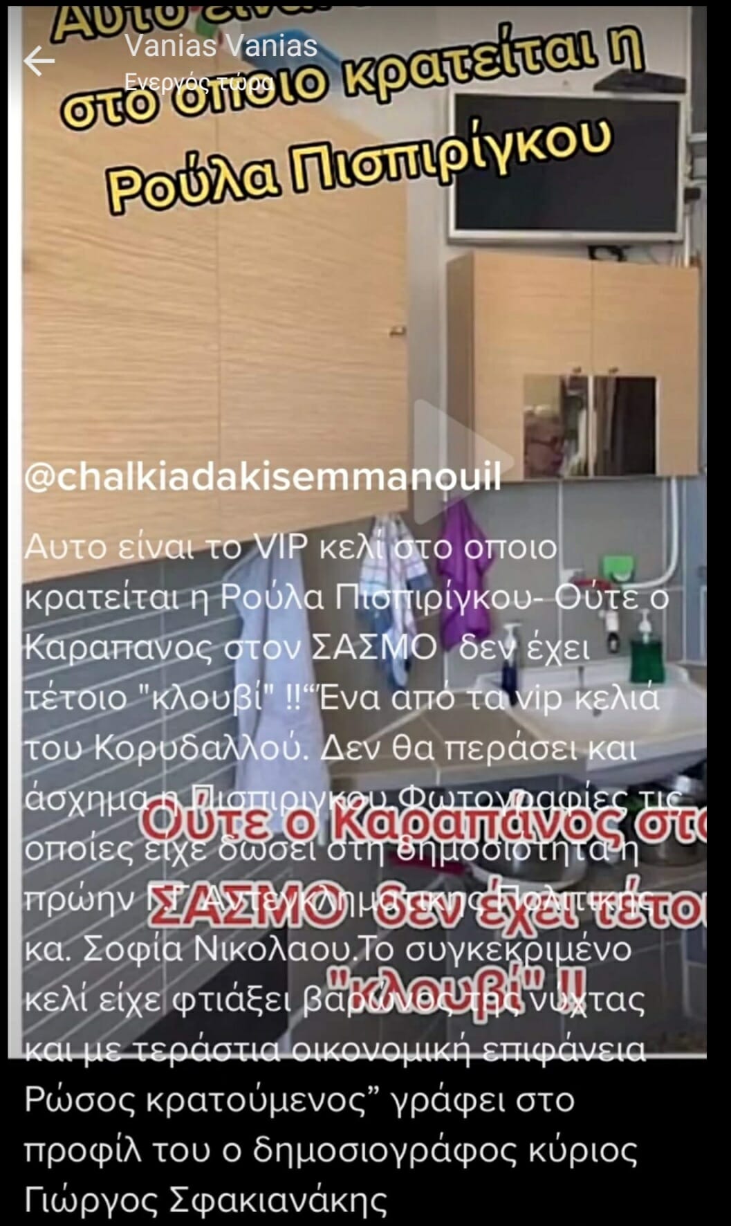 Η φωτογραφία κάνει τον γύρο του διαδικτύου και έχει ανέβει ακόμα και σε ψυχαγωγικές πλατφόρμες όπως το Τικ Τοκ δημιουργώντας ψευδή εικόνα για το τι συμβαίνει ακριβώς γύρω από το όνομά της Ρούλας Πισπιρίγκου.