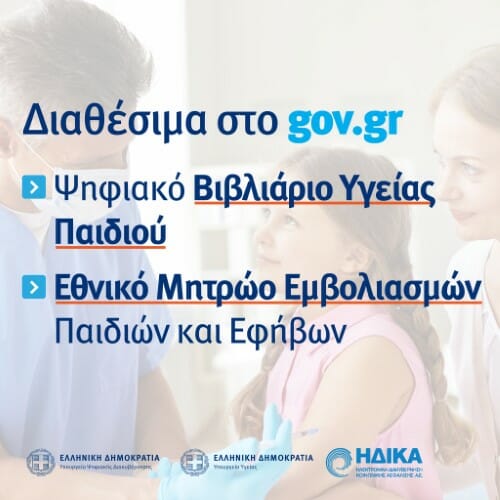 Το Υπουργείο Υγείας θέτει σε λειτουργία για χρήση από τους γονείς τέθηκαν το Ψηφιακό Βιβλιάριο Υγείας Παιδιού και το Εθνικό Μητρώο Εμβολιασμών Παιδιών και Εφήβων