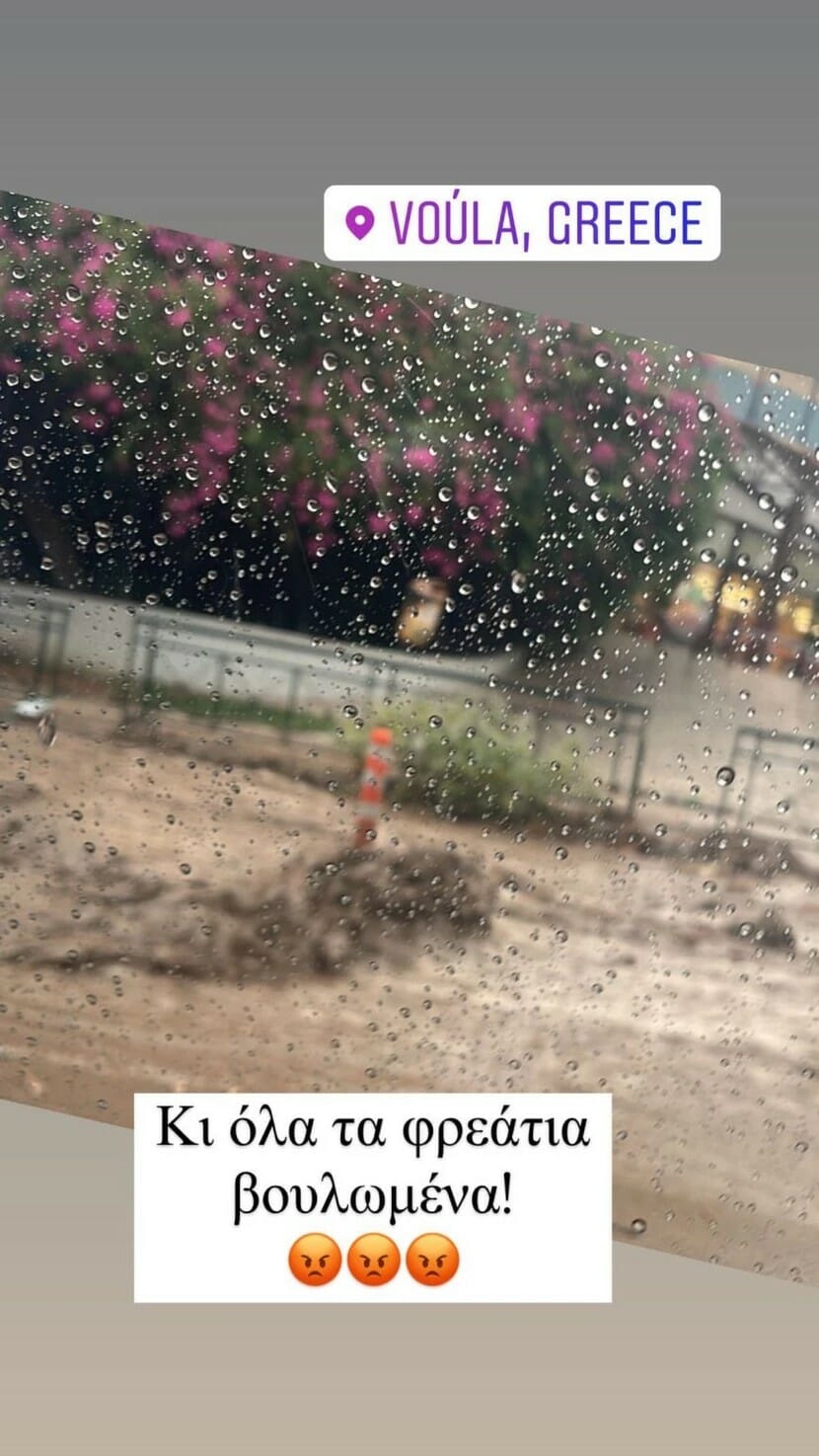 Σε ένα άλλο ανέφερε: «Ποτάμια με πέτρες από το βουνό. Και όλα τα φρεάτια βουλωμένα. Τραγικό. Ντροπή».