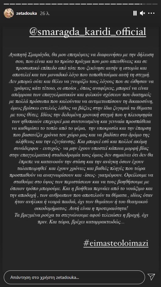 Η ανάρτηση – απάντηση της Ζέτας Δούκα: