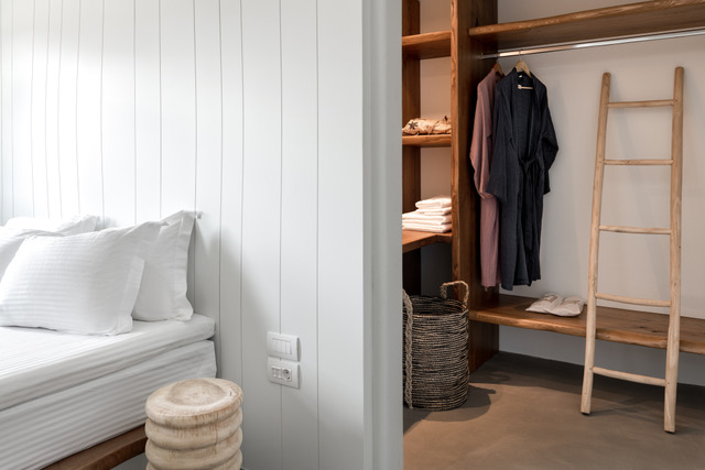 Σχεδιασμένο με σεβασμό στην παραδοσιακή αρχιτεκτονική, το Zetine Suites μαγεύει με τους τόνους του λευκού και του γκρι, ενσωματώνοντας στοιχεία πέτρας και ξύλου που δημιουργούν το τέλειο νησιώτικο σκηνικό.